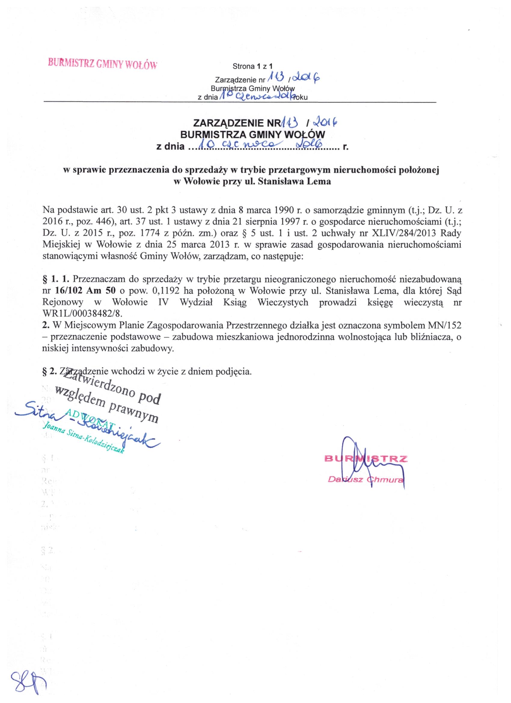 | Ilość odwiedzin: | 2314 | | Nazwa dokumentu: | 113 / 2016 | | Skrócony opis: | Zarządzenie w sprawie przeznaczenia do sprzedaży w trybie przetargowym nieruchomości położonej w Wołowie przy ul.Stanisława Lema. | | Podmiot udostępniający: | Burmistrz Gminy Wołów | | Osoba, która wytworzyła informację: | Joanna Białkowska | | Osoba, która odpowiada za treść: | Joanna Białkowska | | Osoba, która wprowadzała dane: | Joanna Białkowska | | Data wytworzenia informacji: | 2016-06-13 13:57:57 | | Data udostępnienia informacji: | 2016-06-13 13:57:57 | | Data ostatniej aktualizacji: | 2016-06-13 14:06:17 |