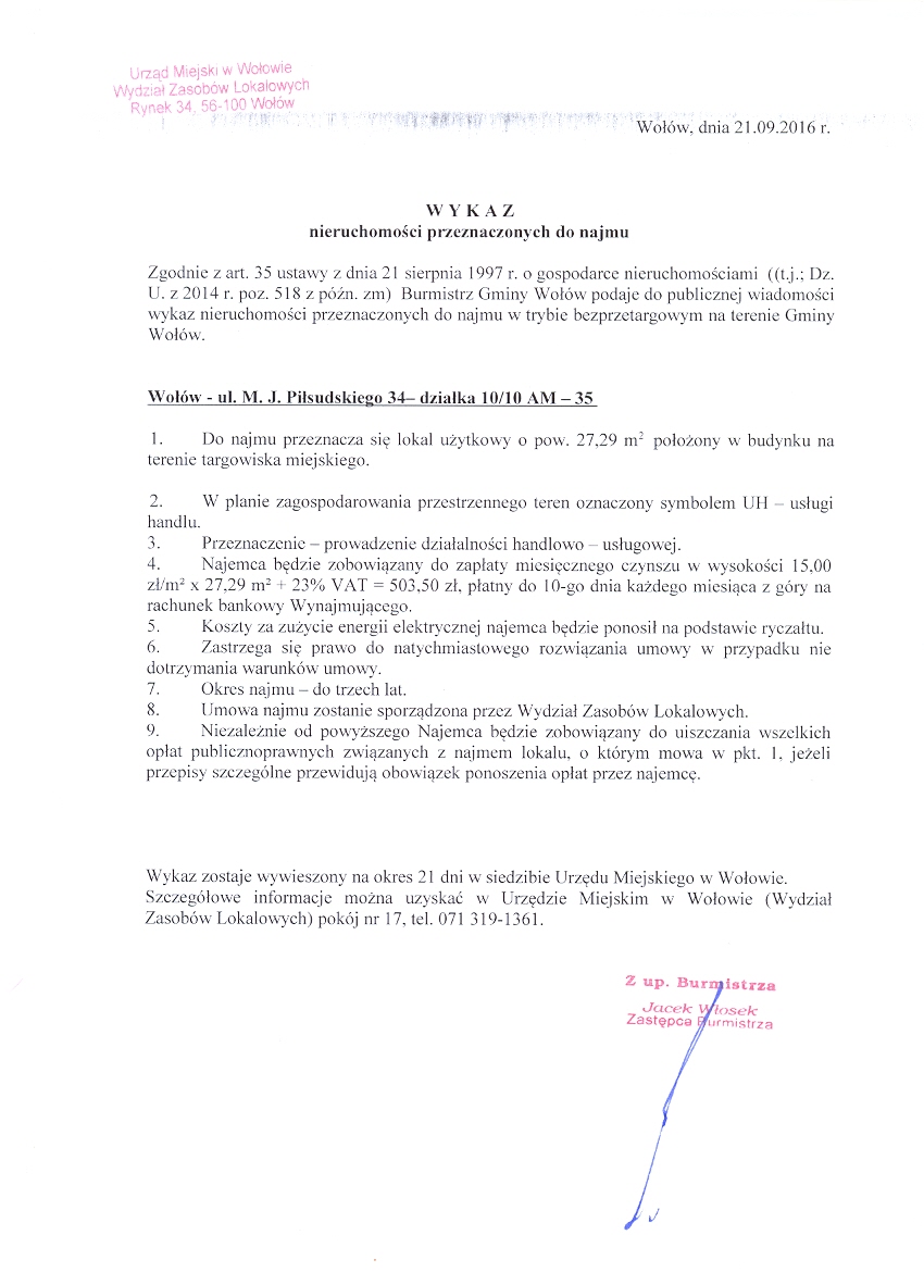 | Ilość odwiedzin: | 3066 | | Nazwa dokumentu: | wykaz-najem | | Skrócony opis: | Wołów, ul. Piłsudskiego 34, dz. nr 10/10 am- 35, lokal użytkowy o pow. 27,29 mkw | | Podmiot udostępniający: | Burmistrz Gminy Wołów | | Osoba, która wytworzyła informację: | Joanna Wojciechowska | | Osoba, która odpowiada za treść: | Joanna Wojciechowska | | Osoba, która wprowadzała dane: | Joanna Wojciechowska | | Data wytworzenia informacji: | 2016-09-22 14:37:37 | | Data udostępnienia informacji: | 2016-09-22 14:37:37 | | Data ostatniej aktualizacji: | 2016-09-22 14:42:03 |