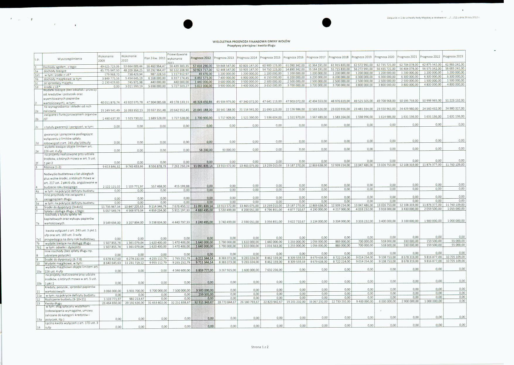 | Nazwa dokumentu: | Projekt uchwały w sprawie zmiany uchwały nr XXII/143/2012 Rady Miejskiej w Wołowie w sprawie przyjęcia wieloletniej prognozy finansowej Gminy Wołów |