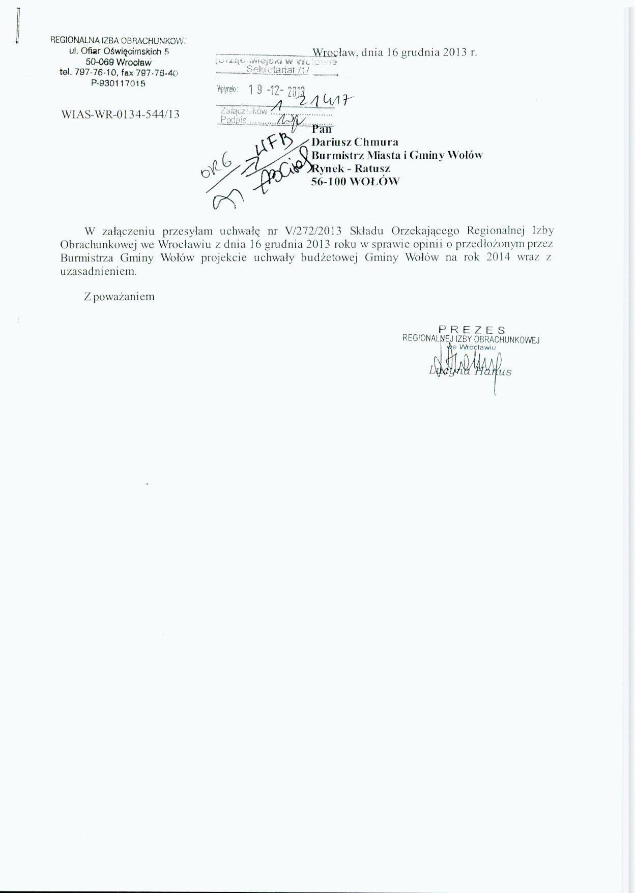 | Nazwa dokumentu: | Uchwała Nr V/272/2013 z dnia 16 grudnia 2013 r. w sprawie opinii o przedłożonym przez Burmistrza Gminy Wołów projekcie uchwały budżetowej Gminy Wołów na rok 2014 wraz z uzasadnieniem |