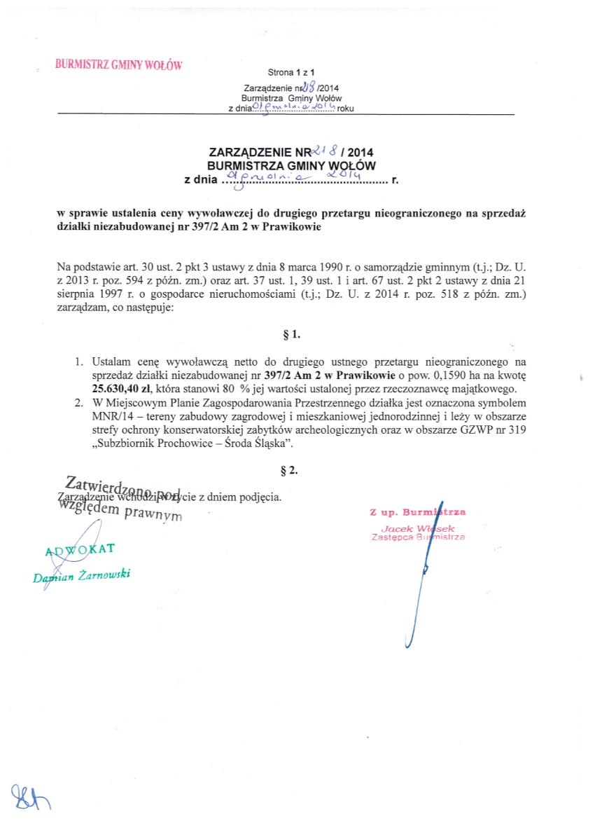 | Ilość odwiedzin: | 2349 | | Nazwa dokumentu: | 218 / 2014 | | Skrócony opis: | Zarządzenie w sprawie ustalenia ceny wywoławczej do drugiego przetargu nieograniczonego na sprzedaż działki niezabudowanej nr 397/2 AM 2 w Prawikowie. | | Podmiot udostępniający: | Burmistrz Gminy Wołów | | Osoba, która wytworzyła informację: | Joanna Białkowska | | Osoba, która odpowiada za treść: | Joanna Białkowska | | Osoba, która wprowadzała dane: | Joanna Białkowska | | Data wytworzenia informacji: | 2014-12-02 12:25:43 | | Data udostępnienia informacji: | 2014-12-02 12:25:43 | | Data ostatniej aktualizacji: | 2014-12-02 12:37:28 |